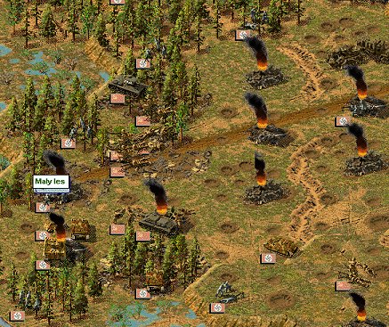 Naštěstí i na ruské straně zapracoval okamžik překvapení a trošku možná i panika. Místo bleskového a razatního úderu na naše tanky všemi silami ze Zajcevova a od Malého lesa stříleli rusové všemi směry a způsobili nám jen malé ztráty. Část sil dokonce postupovala dál na Malý les kde konečně obsadila silnici, kterou už Jalunda neudržel. Nicméně pak přišlo to, v co jsme doufali. Od Zajcevova jsem udeřil já a Kajik, z Malého lesa zbytky Jalundových sil a z boku i část Pupčových sil. Většina ruských tanků v kotli byla zničena, ba i silnici skr les se Jalundovi zuřivým výpadem podařilo znovuobsadit. Vítězství balancovalo na hraně, ale nakonec se přiklonilo k nám. Ruská úderná síla byla zničena a nepřítel přešel po celé délce fronty do obrany. Jen to Zajcevovo opět odolalo a zůstalo v ruských rukách.