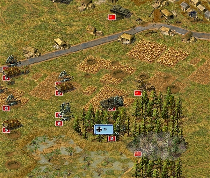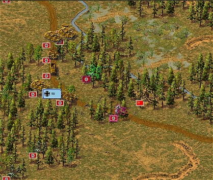 Hned od začátku sem ale začínal nabírat zpoždění .. několik ruských pěších jednotek totiž blokovalo jedinou silnici skrz Velký les a tím i přístup na Hájkovu