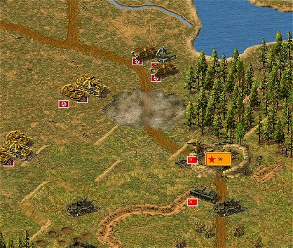 do boku hlavní fronty. A tak se stalo, že se tu z lesa vynořila četa Panzerových těžkých tanků IS-2. Jaké však bylo překvapení německé pechoty v lese, když po chvilce