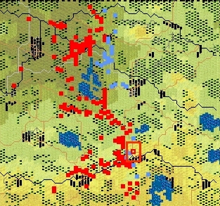 jihozápadně od něj je stažená skupina 566344. Jihozápadně od Zajcevova je pak moje a Zdenkova skupina, pomalu ustupující od krvavé lázně,