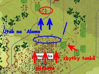 Nicméně sem se zmohl na poslední úder mých stále ještě poměrně zachovaných tankových jednotek po východním okraji pláně J od Alama. Mé tanky obklíčily