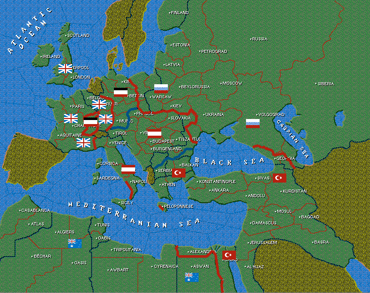 Německo na okraji zhroucení - Závod o Berlín ? - Německá 9.armáda obklíčena ve východní Francii - Rakousko-Uherské loďstvo vládne Středozemnímu moři - Druhá bitva o Kavkaz - Protiútok jednotek ANZAC likviduje Turecký hrot v Kyrenaice - Maršál Krejčuk nevinen ? - Může za únik informací zbloudilý poštovní holub ?? - Turecký špion ve Spojeneckém holubníku ???