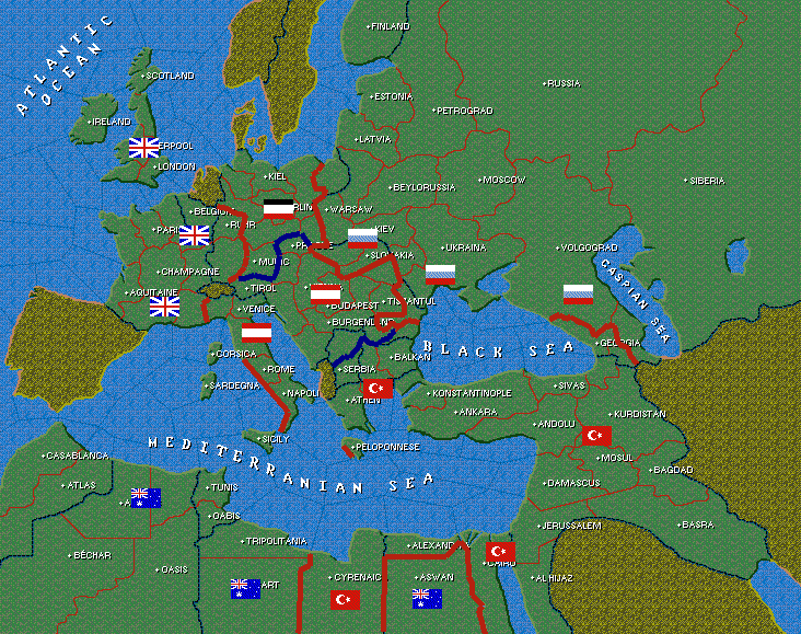 mocností, ale přešel i do vydatného protiútoku a nyní, ke konci roku, jeho vojska stojí za hranicemi Německa i Rakousko-Uherska.