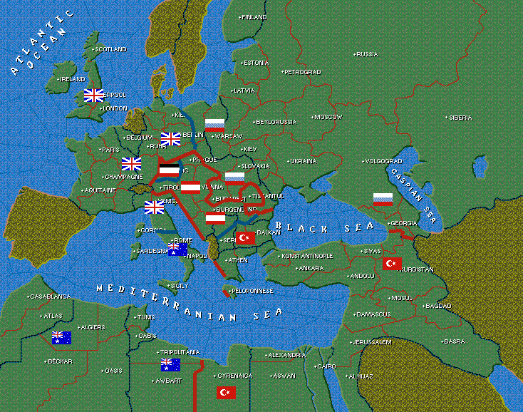 Anglo-Francouzská koalice vítězí v bitvě o Benátky - Ruská armáda drtí císařství - Čechy opět součást Rakousko-Uherska - Jednotky ANZAC osvobozují Řím - Turecká armáda postupuje na Tripolis - 3.armáda chystá protiúder