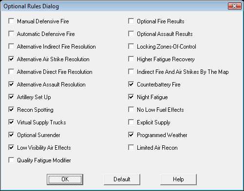 Jednotlivé scénáře kampaně Grossdeutschland budou odehrány s následujícím nastavením Optional Rules.